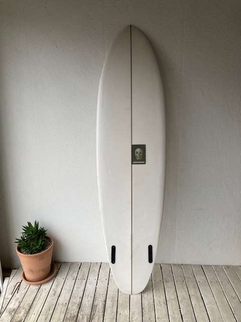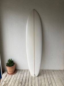 ミッドレングスのツインフィンですがシェイパーによってデザインは異なりますね。