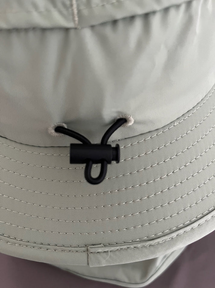 Hatの後頭部にはベンチュレーションが付き通気性を保ちます、後頭部にはサイズ調整可能なドローコード付き。